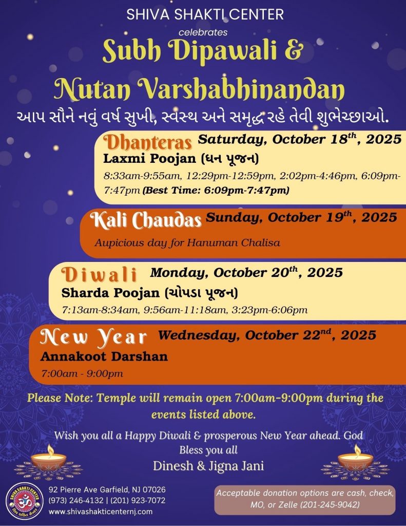 We would like to take this opportunity to appeal to you to make a generous tax-exempt donation to Shiva Shakti Center. Your donation can enable us to make the Shiva Shakti Center a wonderful place of worship and spiritual sanctuary for you and your children. Please donate using Cash, Check, Money Orders & Zelle using phone 201-245-9042 or contact us on 973-246-4132 or 201-923-7072 or make check payable to Shiva Shakti Center and send to 92 Pierre Ave., Garfield, NJ, 07026.